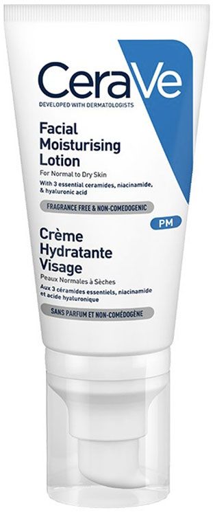 CeraVe PM Facial Moisturizing Lotion with Hyaluronic Acid formula ensures long-lasting hydration to sensitive skin that is normal to dry.