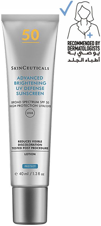 An ultra-lightweight, residue-free formula, Advanced Brightening UV Defense Sunscreen SPF 50 combines broad spectrum UV protection with a potent blend of discoloration-correcting ingredients for brighter, more even skin.