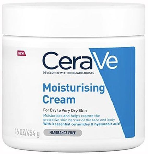 Cerave Moisturizing Cream for Dry Skin with Hyaluronic Acid is a rich cream designed for the face and body that boosts the dry skin's hydration levels for 24 hours.